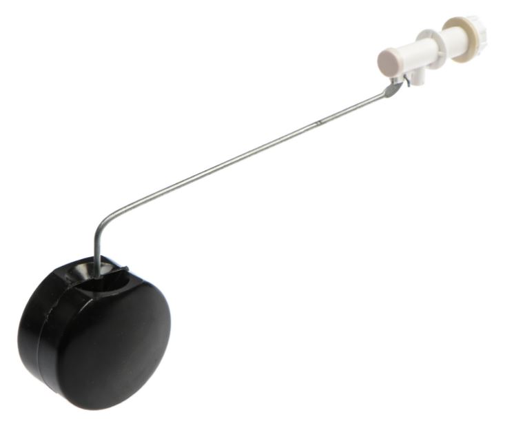 Поплавок, всплывая, перемещает рычаг, который воздействует на шток со вставкой.