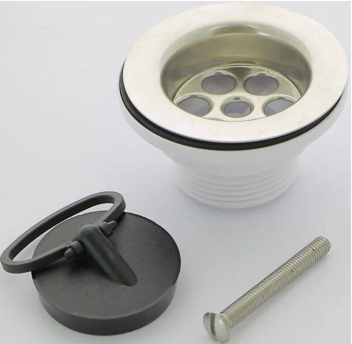 Выпуск с резиновым ободком плотно прилегает к раковине, препятствует проникновению грязи в слив.