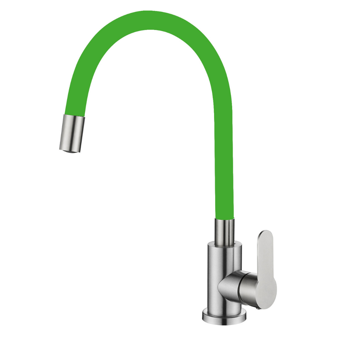 Смеситель для кухни OUTE T40193B-7 одноруч, с высоким изливом 21 см, гайка, зелен, нерж [1/10]