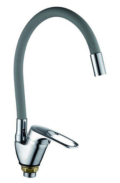 Смеситель для кухни RAINSBERG R3193F-5 одноруч, с гибким силикон изливом 47см, гайка, серый [1/10]