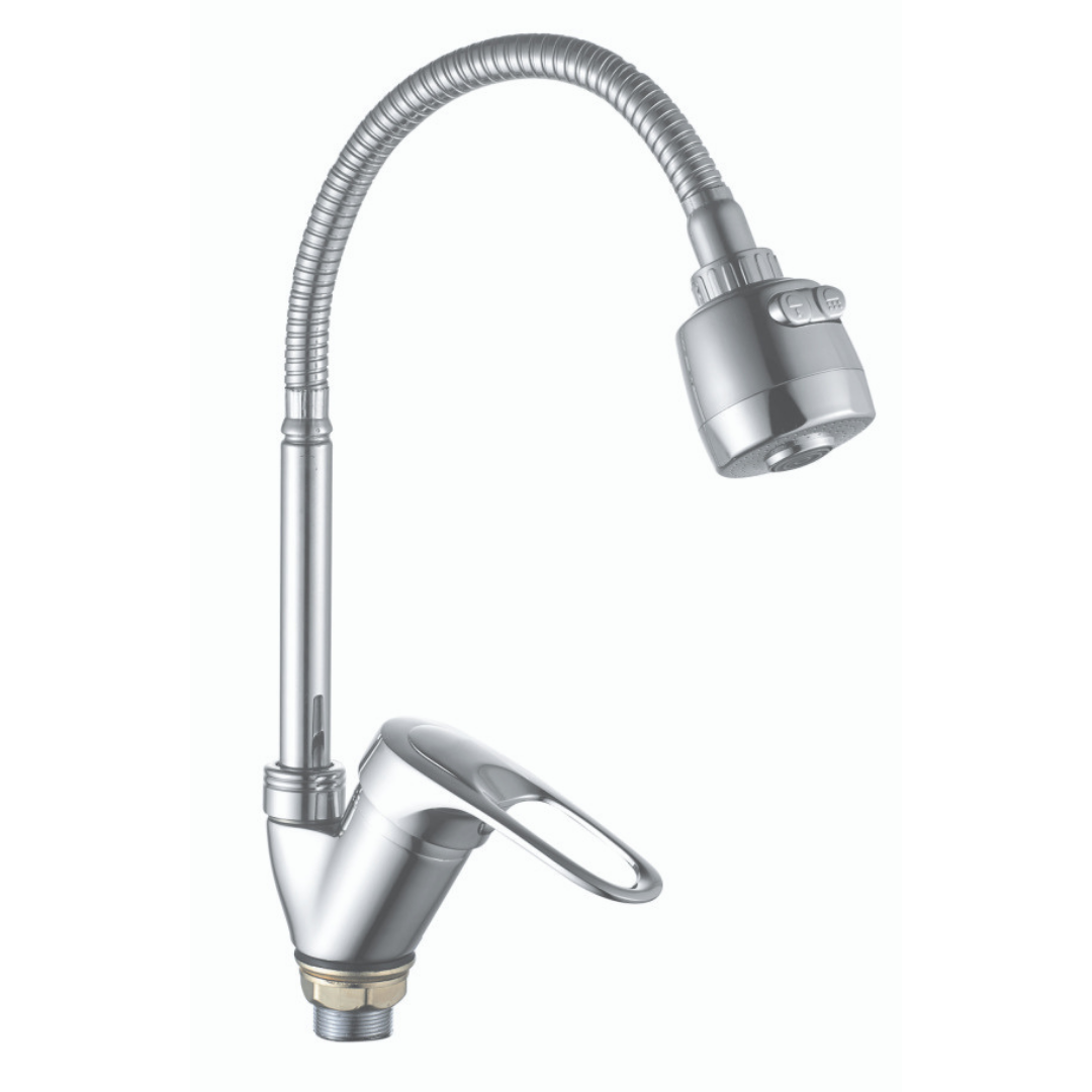 Этот однорычажный смеситель с гибким изливом обеспечивает удобство использования и стильный внешний вид.