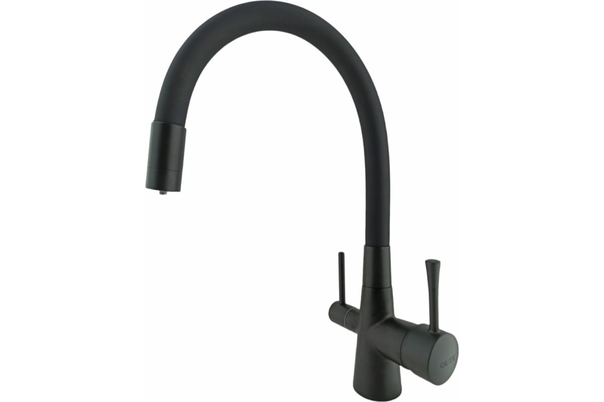 Смеситель для кухни OUTE T60003BH-2 одноруч, с высоким гибким изливом, выход фильтр, черный[1/5]