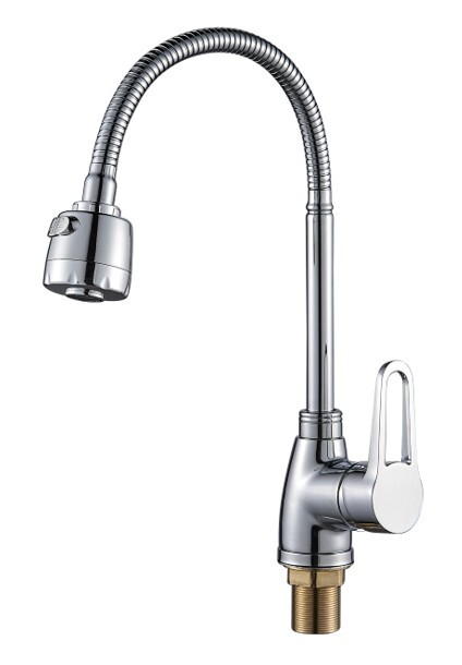 Гибкий излив позволяет менять угол наклона для удобного мытья посуды или наполнения емкостей.