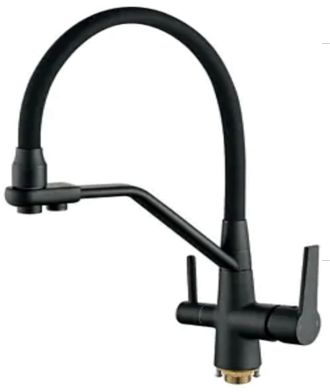 Смеситель для кухни ALOUTE A60613Н-2 одноруч,с гибк излив 21см,выход под фильтр,гайка,черный мат[1/5]