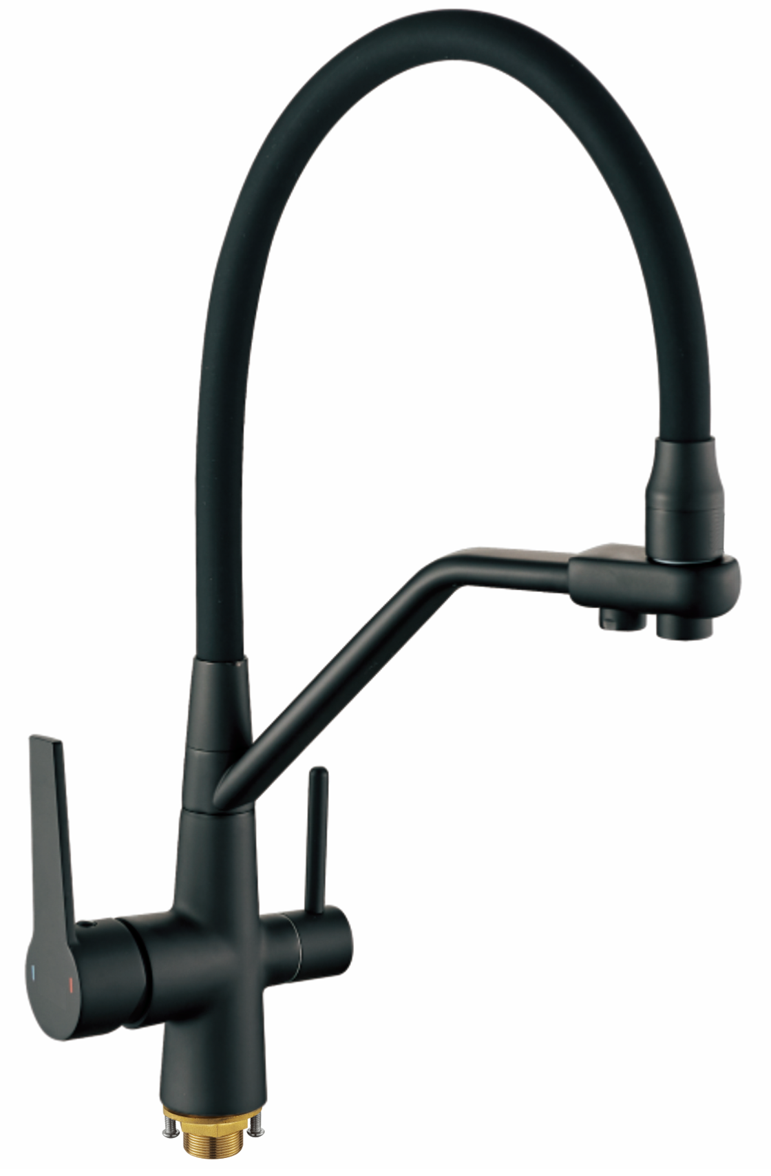 Смеситель для кухни ALOUTE A60613Н-2 одноруч,с гибк излив 21см,выход под фильтр,гайка,черн мат[1/5]