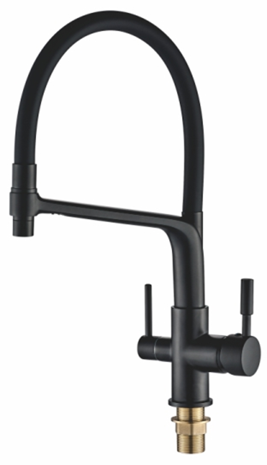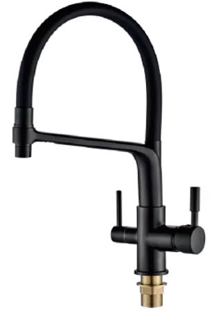 Смеситель для кухни ALOUTE A61313H-2 одноруч,с гибк излив 19,5см,вых под фильтр,гайка,черн мат[1/5]