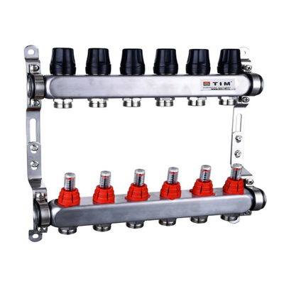 Коллекторная группа TIM 1" квадрат, 6 хода, с расходомер, без торцевых кранов, нерж [1/2]