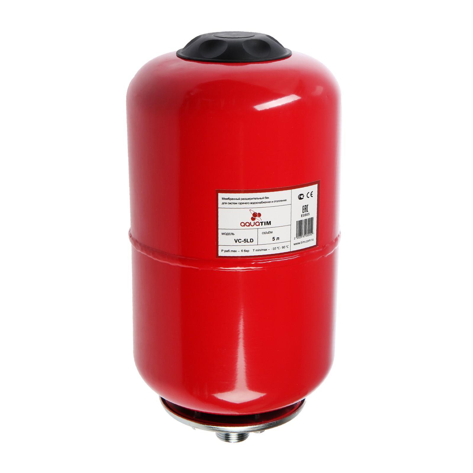 Бак расширительный TIM вертикальный 5л, 6атм, отопление (красный), 3/4" [1]