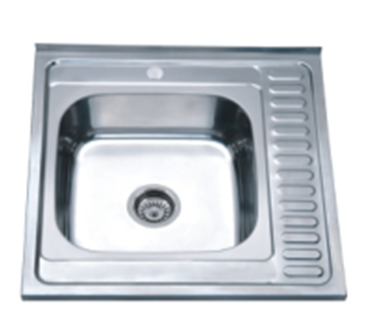 Мойка нержавеющая накладная AQUATTRO 600х600х180х0,8, с сушилкой справа,квадрат,глянцевая[1/10]
