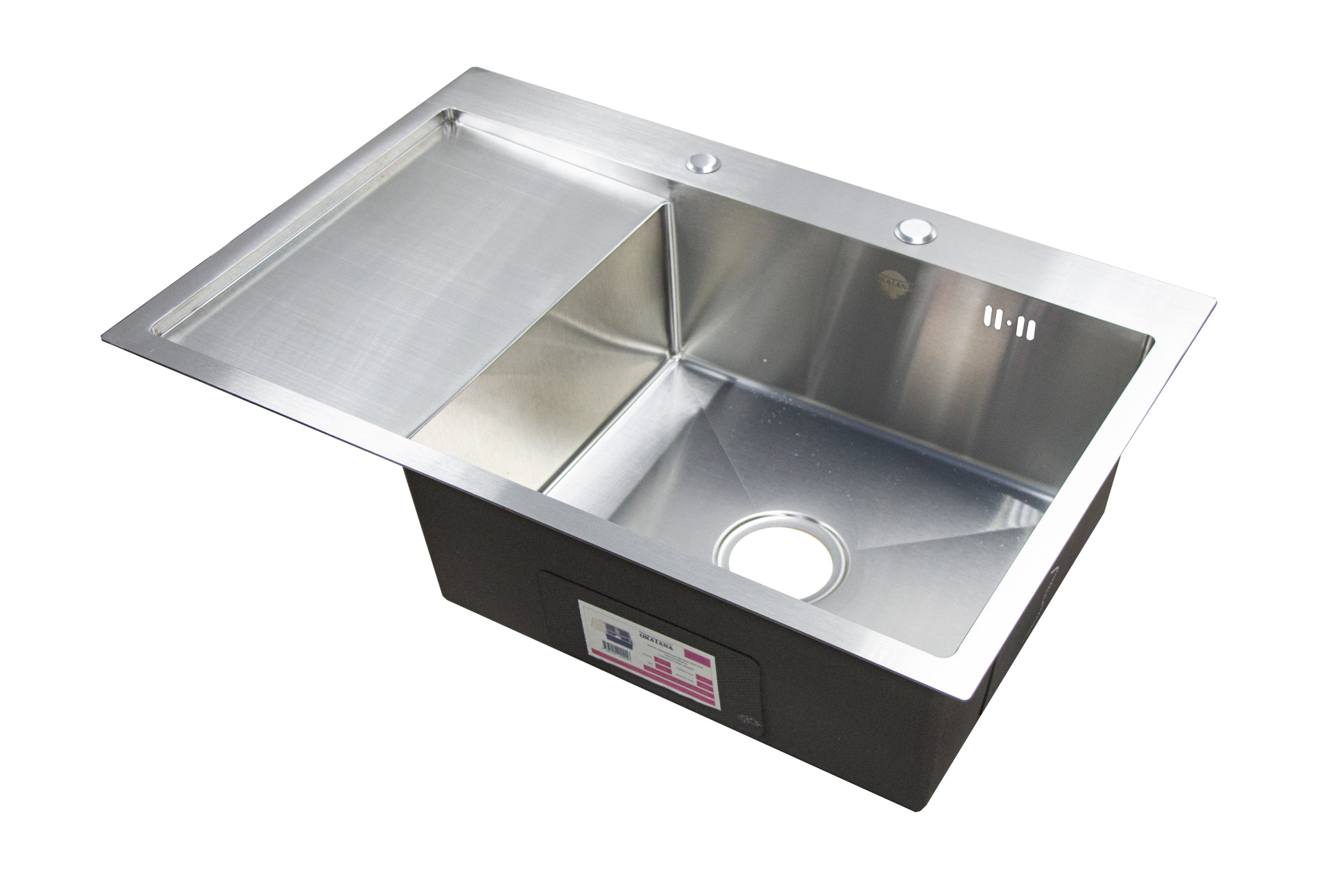 Мойка нержавеющая врезная OKATANA 780х510х200х0,8, с сушилкой слева,квадрат,сатин [1/3]