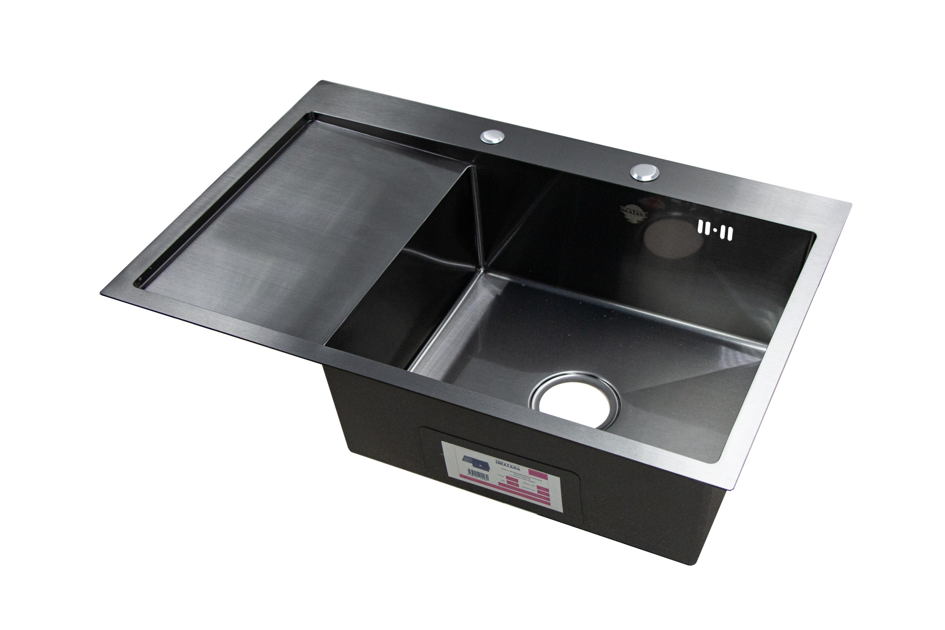 Мойка нержавеющая врезная OKATANA 780х510х200х0,8, с сушилкой слева,квадрат,графит [1/3]